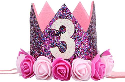 現品 Tinksky パーティー帽子子供王冠フラワーキラキラ3歳誕生日パーティー用品一歳お祝い撮影道具ヘアバンドアクセサリー髪飾りミニクラウン